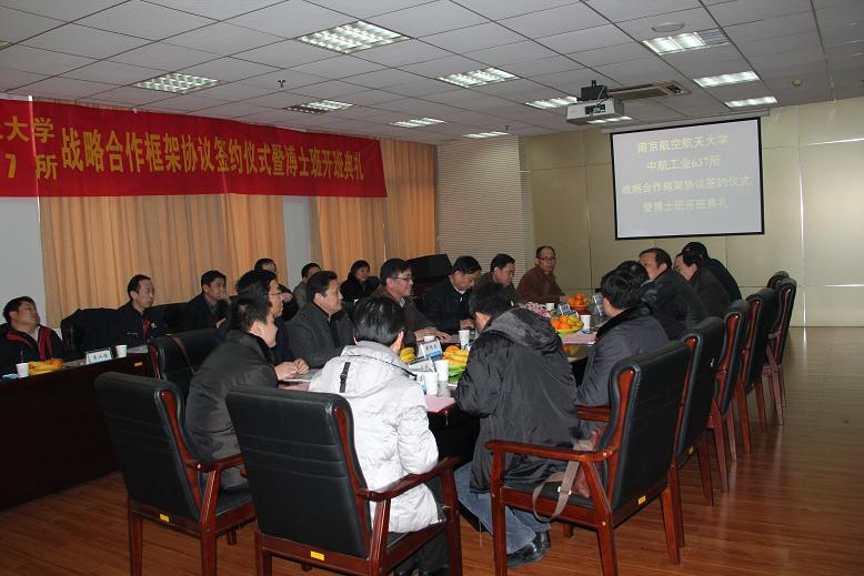 3月7日下午,Ebook漫画 ——中航工业637所战略合作框架协议签订仪式暨2011级博士班开学典礼在明故宫校区Ebook漫画 隆重举行。637所夏裕彬所长、张明习总师、黄培金副所长以及万戈部长携全体高层领导共14人出席签约仪式。校党委常委、副校长聂宏教授、研究生院副院长沈以赴教授以及航空宇航Ebook漫画 、材料科学与技术Ebook漫画 和Ebook漫画 的相关领导、教师代表出席了此次活动。签约仪式由沈以赴副院长主持。