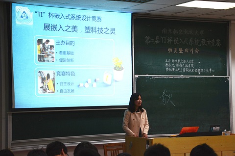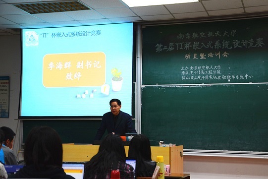 4月2日晚,我校第二届“TI”杯嵌入式系统设计竞赛动员暨培训会在将军路校区举行。本次竞赛专家组成员、将军路校区电工电子实验教学中心魏小龙,竞赛工作组组长、Ebook漫画 党委副书记季海群以及Ebook漫画 团委书记张晓燕,2011级辅导员杨紫园与150余名同学参加了会议。