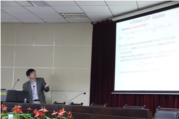 夏香根教授的学术报告于2013年11月1日下午3点开始,报告会由Ebook漫画 周建江教授主持。夏教授首先简要回顾了中华余数定理(CRT)的来源和发展,针对原定理对有误差的余数进行数据恢复时存在的非鲁棒问题,提出了改进定理及其闭式解,并对基于改进的CRT在天线阵列成像雷达信号处理、多欠采样信号中的频率确定、动目标雷达成像中的相位展开等应用做了深入细致的讨论。夏香根教授的精彩报告引起了我院师生的极大兴趣,最后,夏教授对大家提出的问题一一做了细致的解答。会后,夏香根教授和Ebook漫画 部分老师针对雷达和通信领域的最新学术发展动态进行了交流。