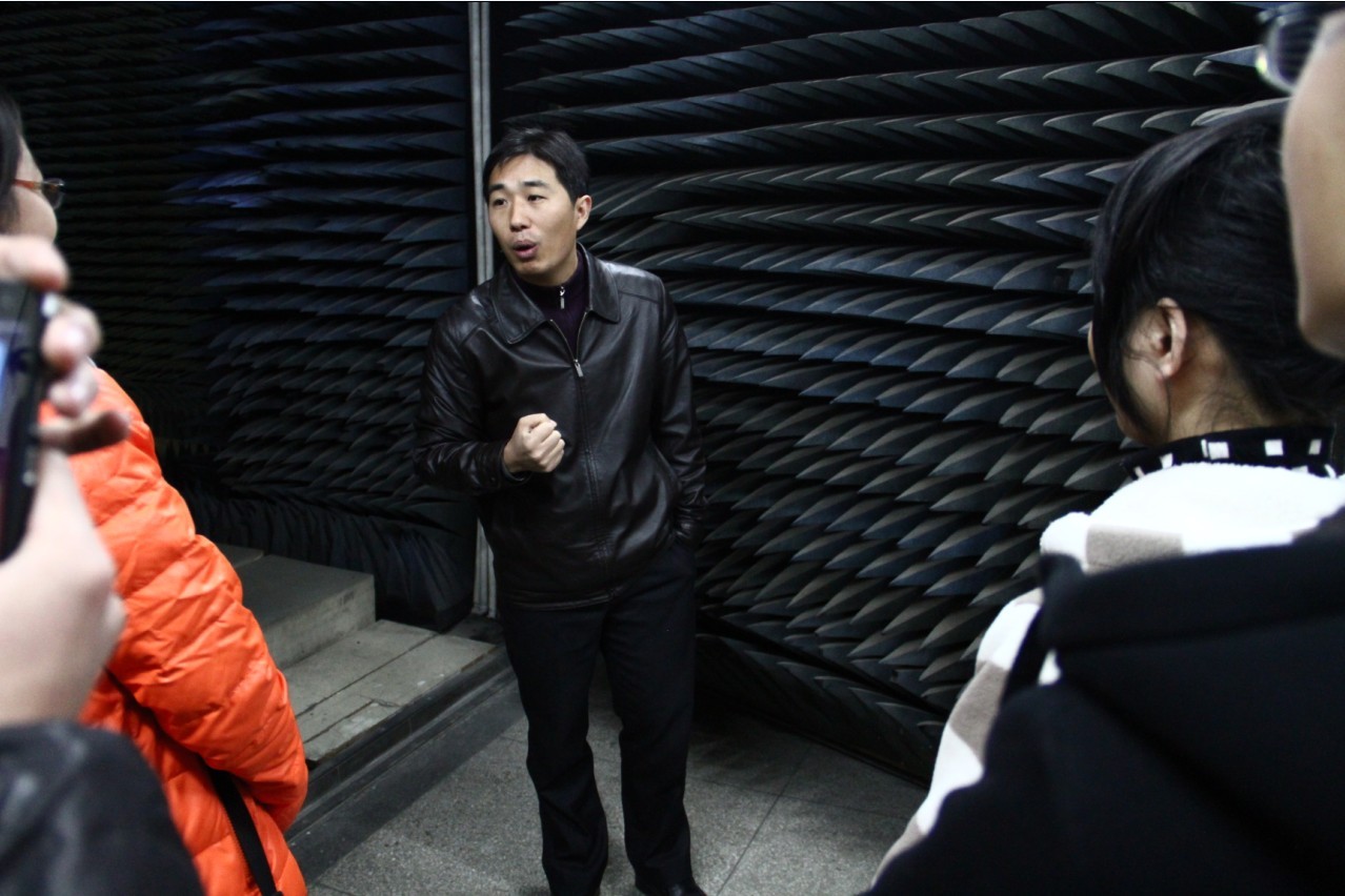 大家首先参观的是Ebook漫画 的重点实验室——微波暗室,Ebook漫画 电子科学与技术系系主任何小祥老师为同学们介绍了实验室的历史和Ebook漫画 的学科实力,并带学生走进暗室近距离接触实验器材。在微波暗室参观结束后,何老师还带大家参观了校园,介绍了A10号楼刚建成时是这一带的地标,它周围几栋教学楼也是以前Ebook漫画 用来架设天线做实验的地方,具有深厚的历史。