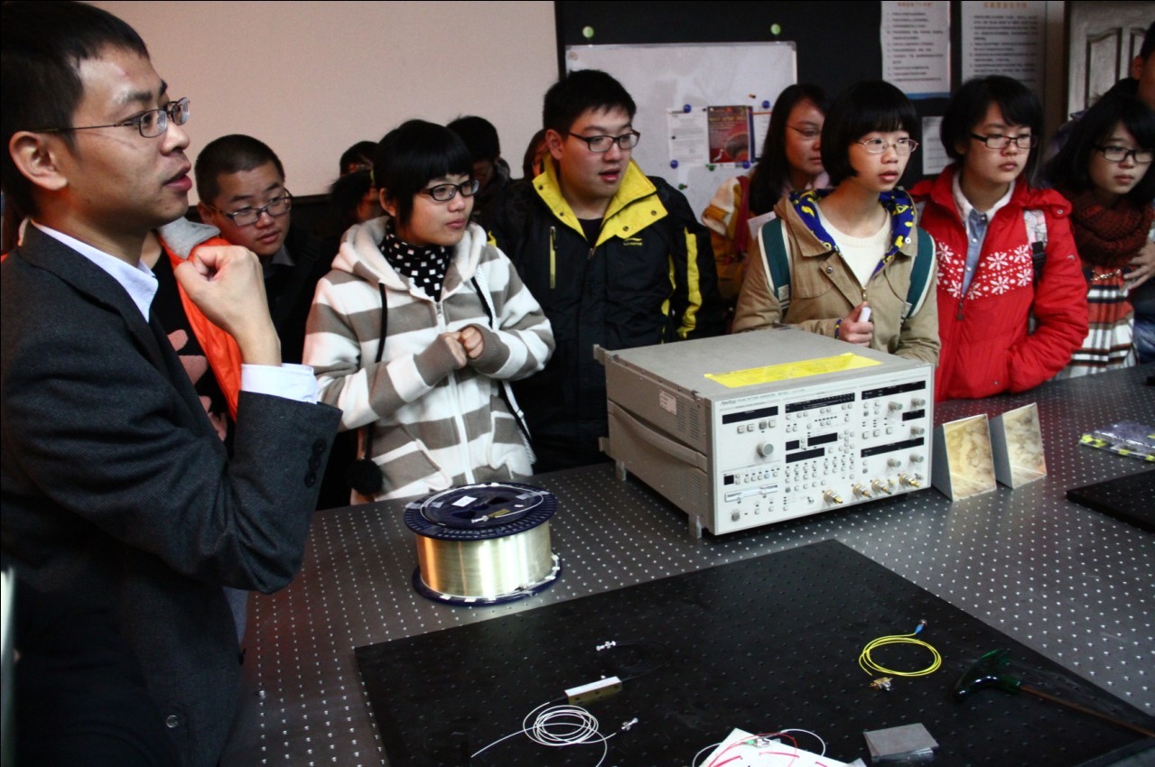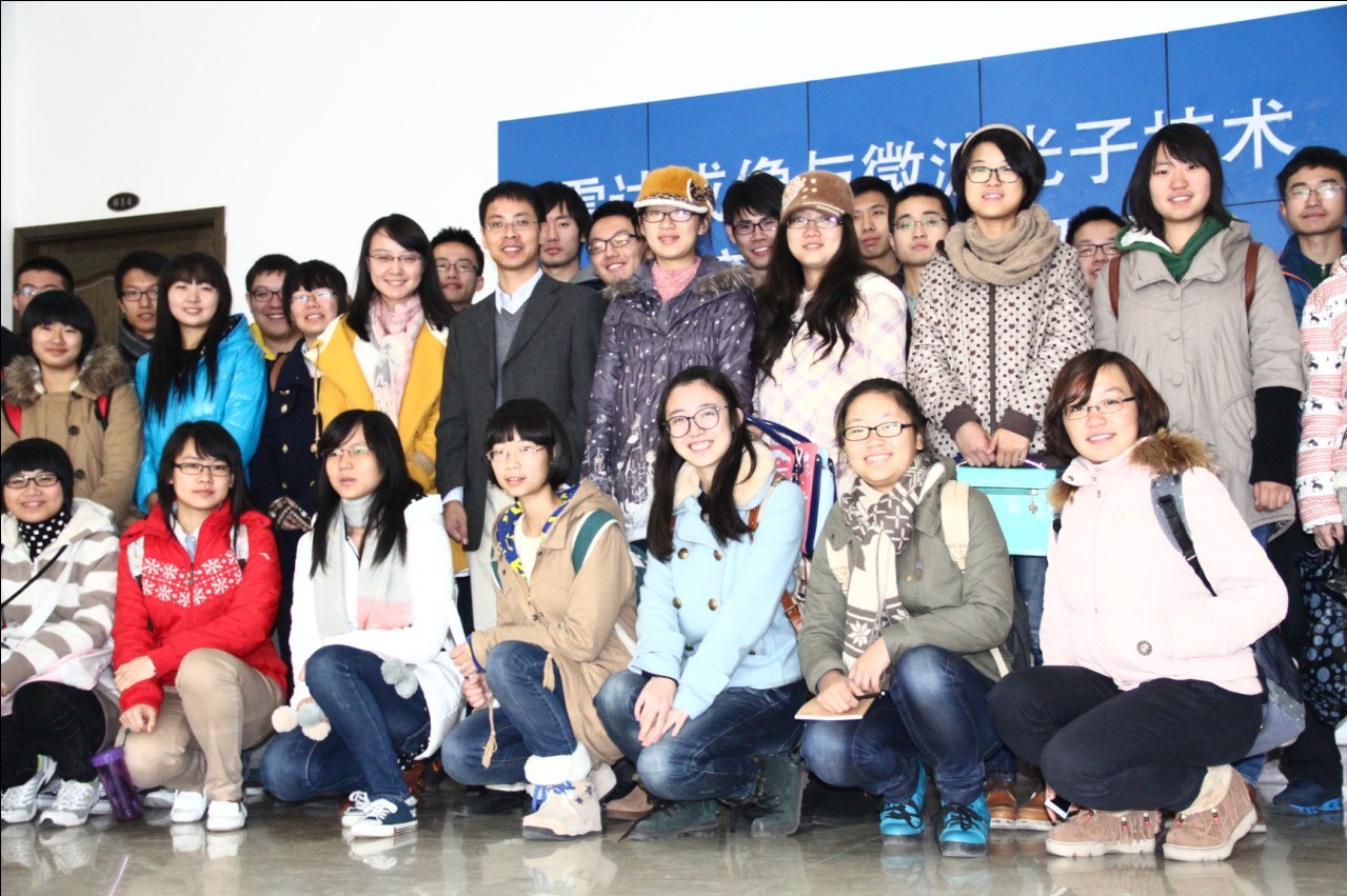 在沙龙开始之前,参加此次沙龙的42位大一新生来到Ebook漫画 微波光子学教育部重点实验室。潘教授为大家详细介绍了该实验室的三大科研功能,用很形象的比喻地向大家讲解了微波的学科意义,同时介绍了本实验室里我院取得的成就。潘教授谈到实验室很多重大突破都是Ebook漫画 在读研究生完成,并鼓励大家多钻研,假以时日,在学生期间也能获得出色的科研成果。