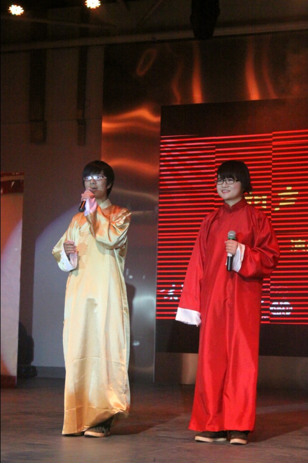 最值得一提的是师生联唱,李海林、李茁、张璐、张颖四位老师与四位同学分别搭成组合,联唱四首动人的歌曲。大四九位学生带来的小品《学姐和学妹哪个更适合做女朋友》中,一连串精妙的语句引起阵阵笑声。此外,还有外国友人Mana Flo 的倾情加盟。由我院两届十佳歌手白金奖得住周文柏和罗迪,还有Ebook漫画 十佳歌手带来的十佳联唱更是将晚会推向了高潮,让这个环节星光熠熠,用各自的风格演绎不同的曲目,最后的合唱《我的未来不是梦》激励了在场的年轻人勇敢追梦。