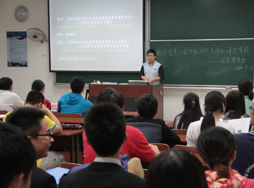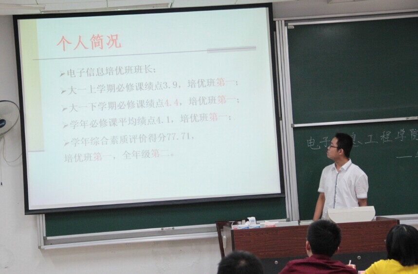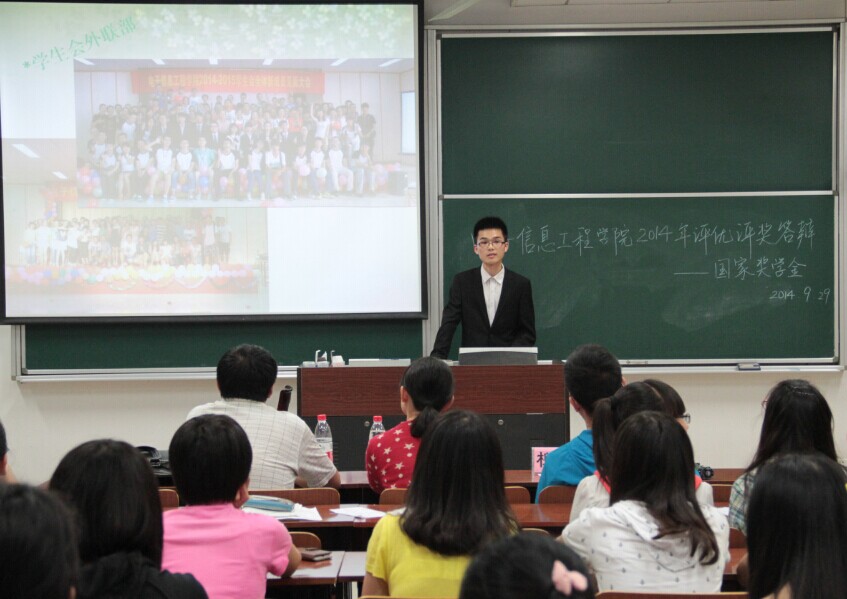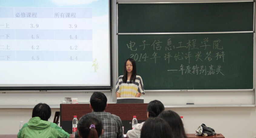 9月29日晚7点,我院2014年本科生评优评奖公开答辩在将军路校区七号楼举行。担任年度特别嘉奖答辩评委的有Ebook漫画 团委书记张晓燕老师、信息与通信工程系党支部书记李勇老师、教务处袁李华老师、2011级辅导员杨紫园老师、Ebook漫画 王旭东老师和李思敏老师。担任国家奖学金答辩评委的有王毅老师、吴迪老师、郭荣辉老师、柳涛老师、2012级辅导员丁亮老师、2013级辅导员周贞琪老师,各年级学生积极前来观看答辩。