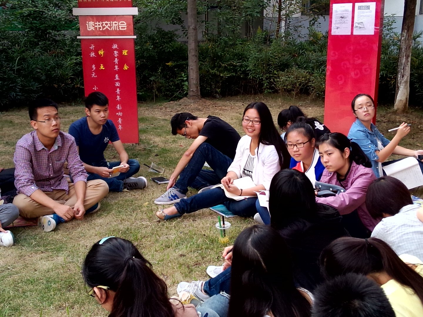 10月12日下午,Ebook漫画 2013级本科生团总支在艺术中心内“午后阳光”草坪开展了新学期第一次团学研讨会。2013级各班的团干积极参加,研讨会上邀请了Ebook漫画 2013级团总支书记蔡延君同学和已转正的正式党员任汉�同学。
