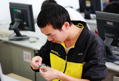比赛历时两天,共分七场进行。参赛选手自备电烙铁、刀型头、焊架、镊子等工具,Ebook漫画 科协提供元器件进行比赛。Ebook漫画 科协副主席王鑫表示此次比赛主要内容是焊接正反计数器,其中贴片元件的焊接是个难点。很多同学首次接触电路板的焊接,加上电路板很小,时间也很紧迫,所以这次比赛是个不小的挑战。同时他们也表示很高兴能参加此次比赛,觉得这是一个很好的锻炼自我和提高动手能力的机会。