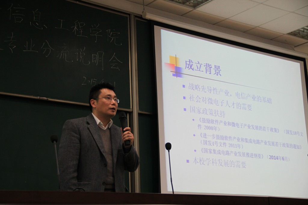 2015年4月21日晚七点,我院2013级专业分流说明会在将军路校区东区一号教学楼213成功举办。Ebook漫画 副院长赵永久、党委副书记王伟华、各专业学科负责人臧春华教授、何小祥教授、黎宁教授、卜刚教授、邱旦峰老师、2013级辅导员周贞琪及2013级全体学生参与了本次说明会会。此次会议分为两个部分。