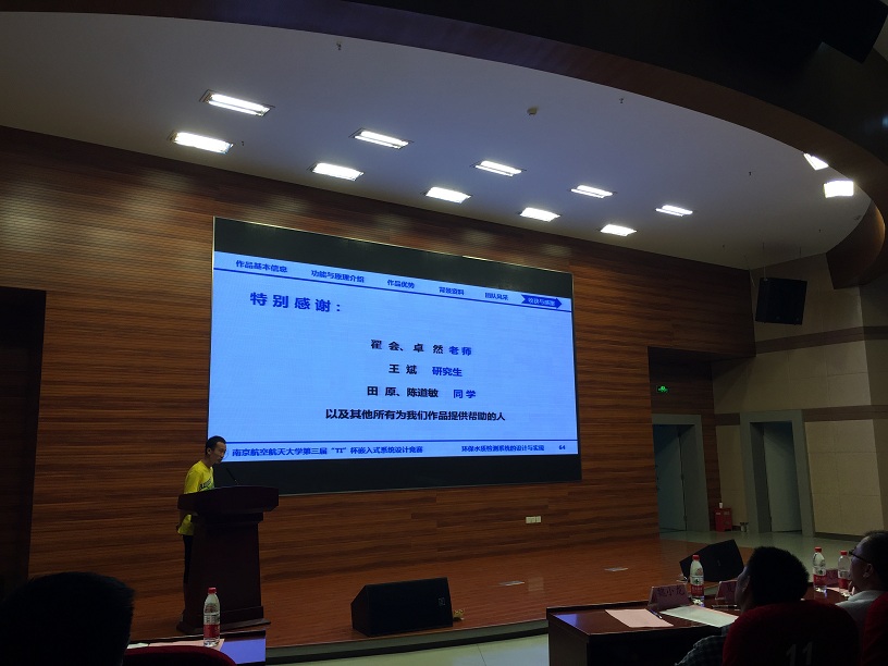 最后是本次活动的最后一个环节:颁奖典礼。首先由Ebook漫画 副院长赵永久教授对本次比赛进行了总结,并对德州仪器公司的大力支持表示感谢。接着由德州仪器公司王承宁总监致辞,希望可以与校方有更多的合作领域和机会。随后,专家评委代表夏伟杰、魏小龙分别对作品进行了点评。本次比赛共选出特等奖2组,一等奖6组,二等奖12组。获得特等奖的两组作品分别是环保水质监测系统的设计与实现(专业组)、智能爬杆机器人(普通组)。这两组也分别派出代表向在场嘉宾和同学们进行了简要展示。此次闭幕式在全场热烈的掌声中圆满结束。