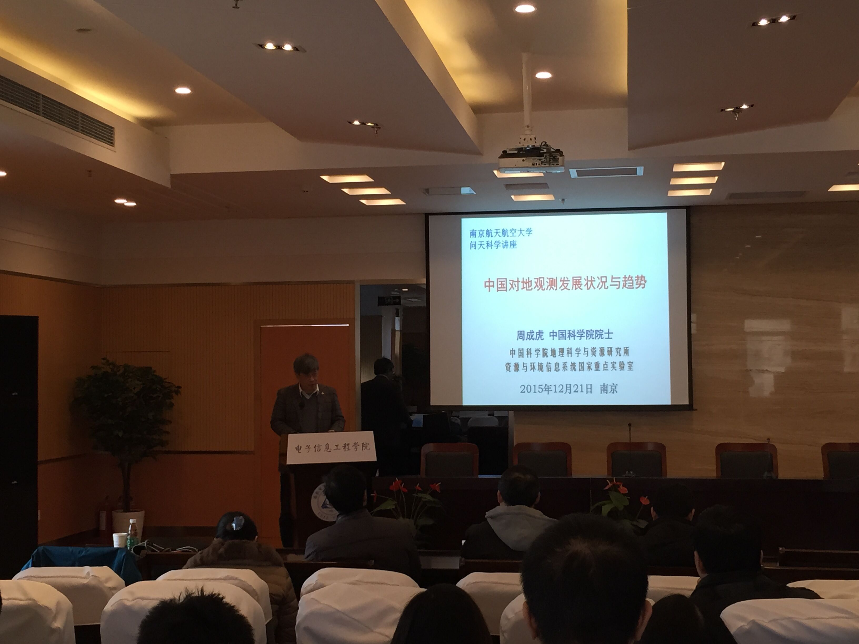 2015年12月21日,中国科Ebook漫画 院士、中国科Ebook漫画 地理科学与资源研究所研究员,地理信息系统与遥感应用专家周成虎教授来我校访学,并以《中国对地观测发展状况与趋势》为主题做了学术报告。报告会在Ebook漫画 515报告厅举行,由校长助理熊克主持,Ebook漫画 与航天Ebook漫画 的教师、学生参加了此次报告会。