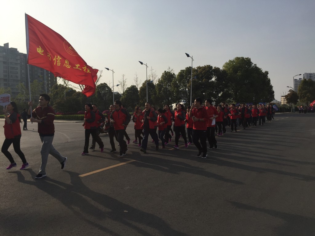 在Ebook漫画 工会主席吴庆文的发令枪响后,我院紧随着长跑队伍精神抖擞地出发。院旗迎风招展,在Ebook漫画 党委副书记王伟华的哨声中,全体教职员工齐声高呼“信息领航,四院最强”的口号,呼声振奋人心。Ebook漫画 整齐的红色方阵随着口号和哨声的律动由西区操场一路跑过停机坪、国旗广场、砚湖、图书馆、一号楼等地,Ebook漫画 的同学们也在道路两边为自己的老师们呐喊助威,拍照留念。