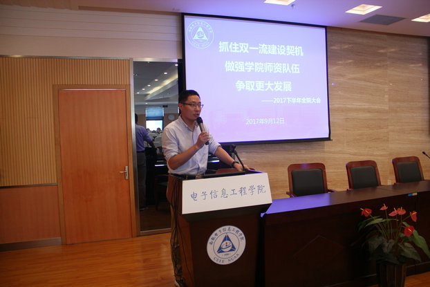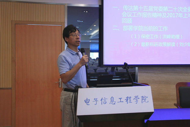 常务副院长周建江作了《抓住‘双一流’建设契机,做强Ebook漫画 师资队伍,争取更大发展》的报告,全面传达了聂宏校长第十五届党委第二十次全委(扩大)会议的工作报告精神,以“双一流”建设目标为主线,回顾Ebook漫画 2017年上半年在党建与思想政治、人才培养、师资队伍、学科建设、科研能力、办学条件和国际化等方面取得的成就;部署Ebook漫画 2017下半年工作重点,并结合报告内容对Ebook漫画 工作进行了总结和部署。周院长强调,全院教职工要抓住‘双一流’建设契机,做强Ebook漫画 师资队伍尤其是相关学科方向的学科带头人引进,争取Ebook漫画 更大发展。针对即将开展的保密资格审查认证工作,周院长要求每一位教师员工思想上高度重视,行动上切实落实。