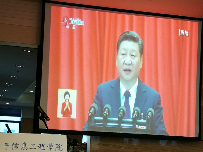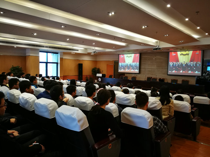 2017年10月18日,Ebook漫画 组织师生在Ebook漫画 515报告厅集中观看了中国共产党第十九届全国代表大会的开幕式直播,认真收看习近平总书记在开幕式上所做的大会报告。在习近平总书记作重要讲话的过程中,全体老师都聚精会神地聆听,并不时表现出激动和兴奋的心情,很多老师在观看习总书记报告时还用心做笔记,还有老师在微信等社交平台中表达了观看十九大的激动心情和心得体会。