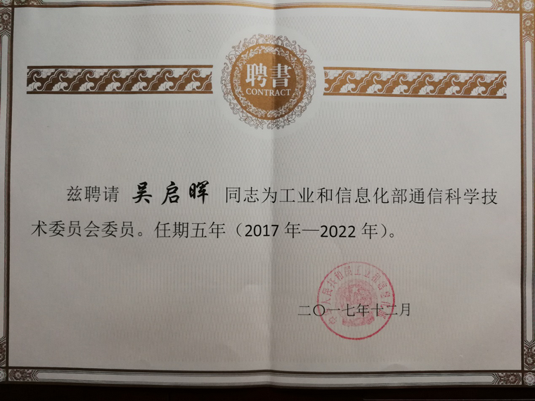 我院吴启晖教授受聘为新一届通信科技委委员。