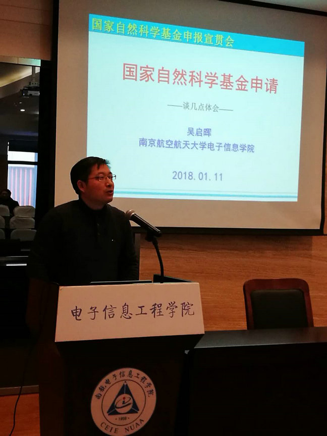 述职述廉大会结束后,长江学者,副院长吴启晖教授为全院教师作了《国家自然科学基金申请书撰写》的学术报告,吴教授结合国家自然科学基金的评审要求、国家自然科学基金申请书的评阅经历以及自己申报成功的经验体会,介绍了近年来国家自然科学基金申请书在撰写过程中需要考虑和关注的主要问题。