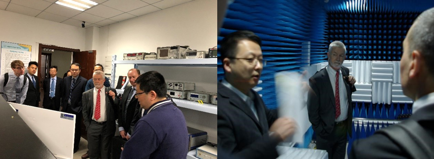 会议开幕前,Ebook漫画 院长周建江教授亲自带领英方参会人员参观了雷达成像与微波光子技术教育部重点实验室。教授们对Ebook漫画 微波暗室的建设规模给予了高度评价,并与南航参会教授们在Ebook漫画 大门前合影留念。