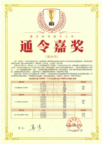 在大会上,副校长施大宁宣读了《Ebook漫画 通令嘉奖(第68号)》。我院的“无人机智能频谱监测仪”团队,凭借在第四届中国“互联网+”大学生创新创业大赛中的优异表现,获得校长通令嘉奖。校党委书记郑永安、校长聂宏为我院获奖团队颁奖。