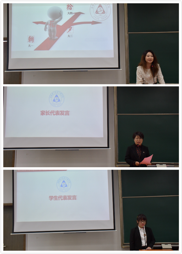 2017级辅导员周高雨以近年来退学学生的实例为切入点,介绍学籍管理办法,同时分析了年级每一名学困生的形成原因、采取的举措以及面对的困难。然后由心理辅导员李萍分析了学习困难生的心理状况,为家长帮助孩子走出困境、进一步提升自我提出切实建议。最后,由成功转化的学困生代表讲述自己由“学困”到“学优”的转变的经历,用切身的体会与实际的案例向家长们提供实用的经验。这场座谈会既直面问题,又给了家长希望;既剖析了问题,也提出了举措,到场家长们表示会好好总结,会后与孩子进行深度交流。