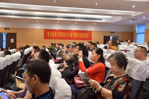 与此同时,2017级国际交流宣讲会也在Ebook漫画 515报告厅火热进行中。宣讲会由Ebook漫画 副院长雷磊老师主持,由国际教育Ebook漫画 副院长李勇老师主讲,李老师对国际交流项目进行了具体介绍,近百名家长对于国际交流有了新的认识和了解。当天下午,Ebook漫画 还为家长们精心准备了“礼赞新中国,唱响新时代”红歌会和素质能力悦享会,进一步展现学生的青春与活力。