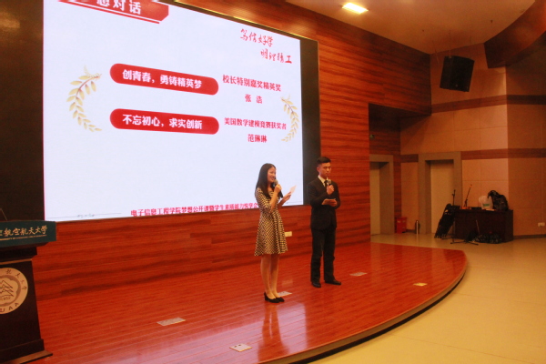 第二篇章,校长特别嘉奖精英奖获得者张浩和美国数学建模竞赛获奖者范琳琳通过对话形式,回望青春,畅谈理想并向同学们介绍自己的科创经历,鼓励同学们在科研路上追梦。