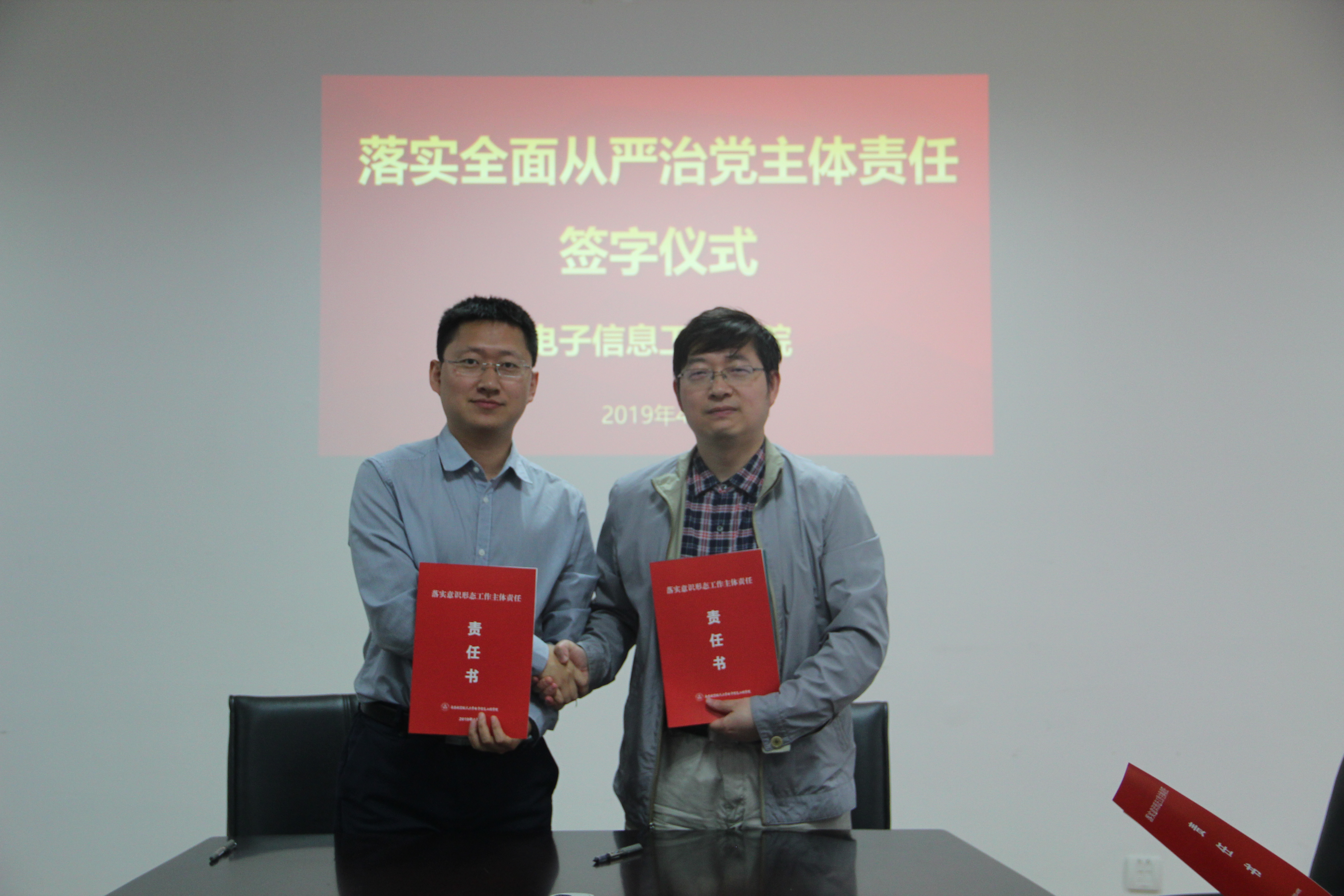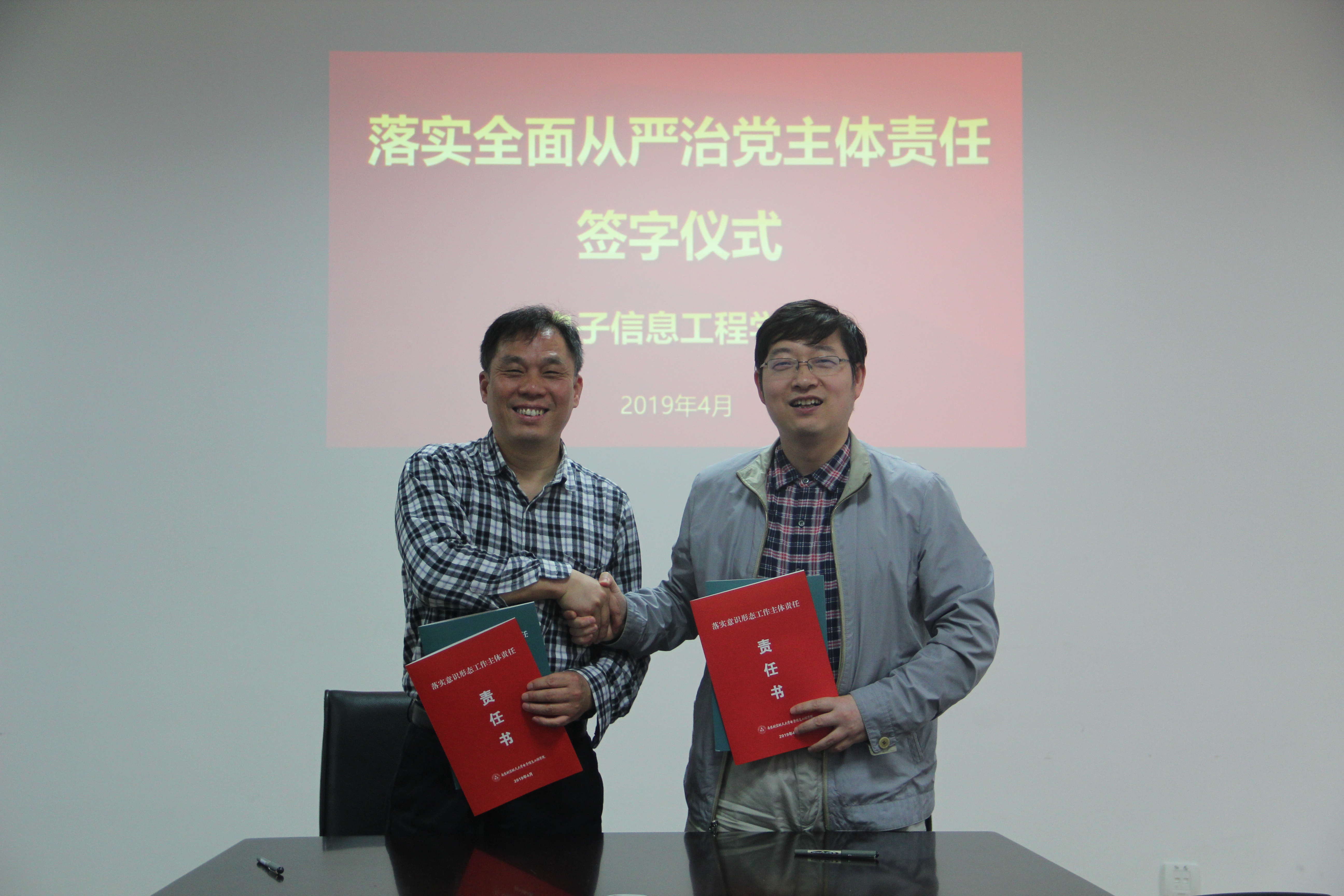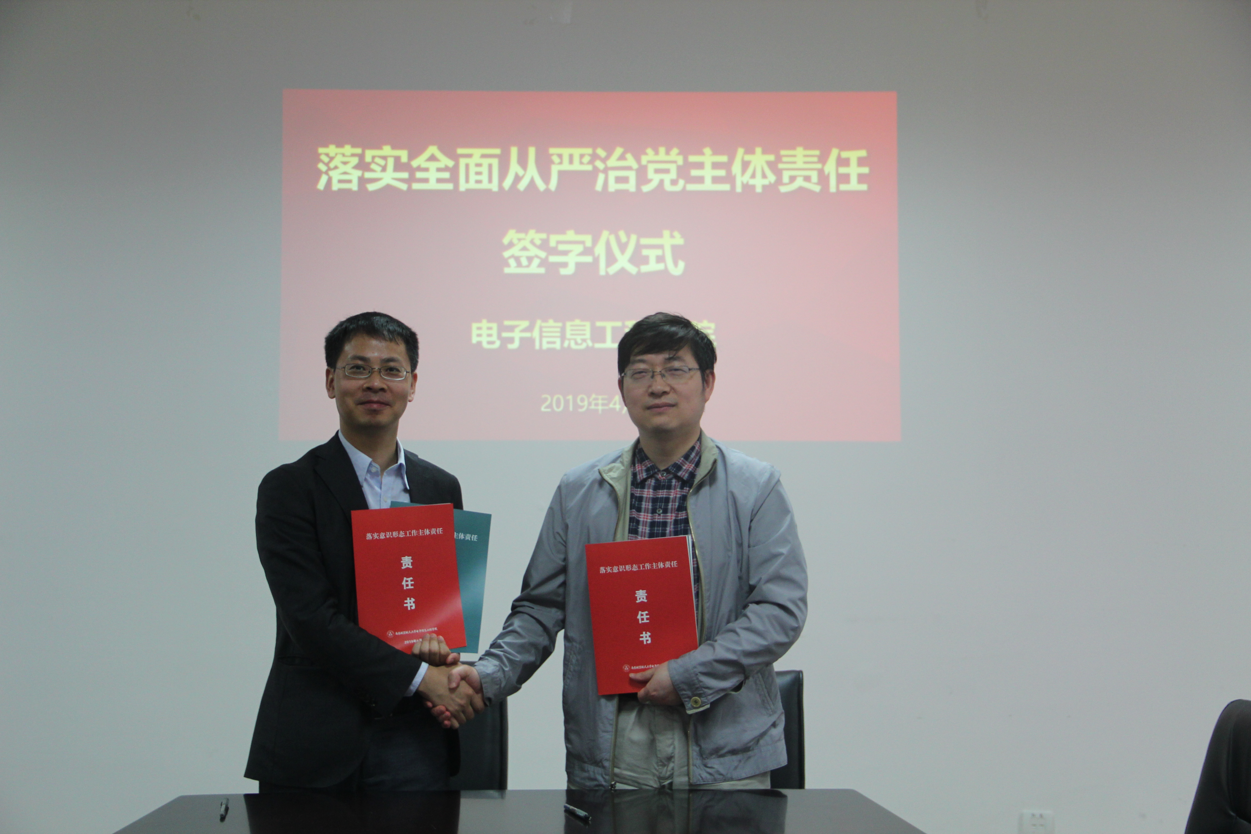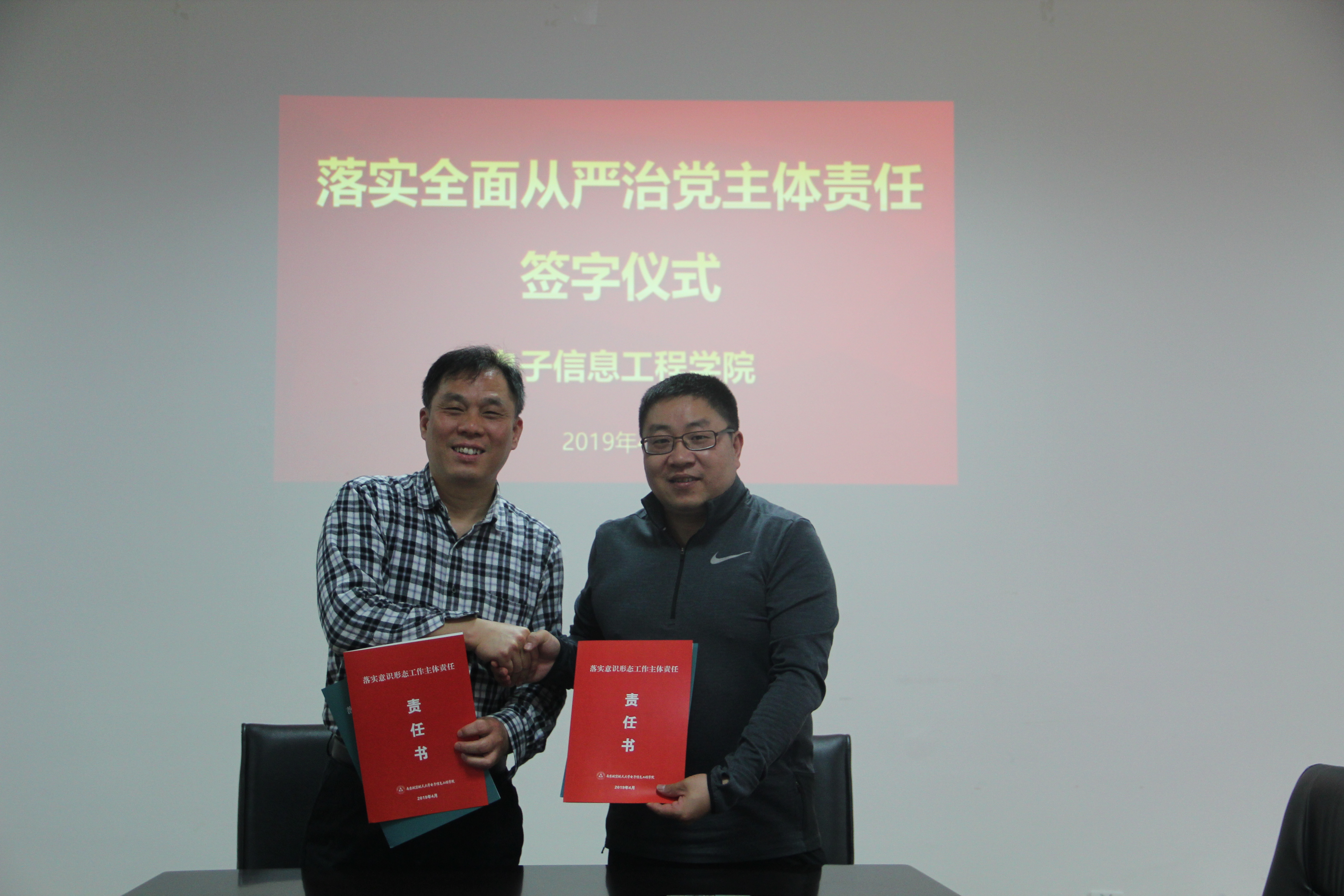 4月24日,Ebook漫画 召开党委理论中心组学习扩大会,以落实立德树人根本任务为主题开展专题学习。会上同时举行落实全面从严治党主体责任责任书签订仪式。Ebook漫画 领导班子、党委委员、院长助理、系主任、科级干部、教工党支部书记参加会议,会议由党委书记聂东林主持。