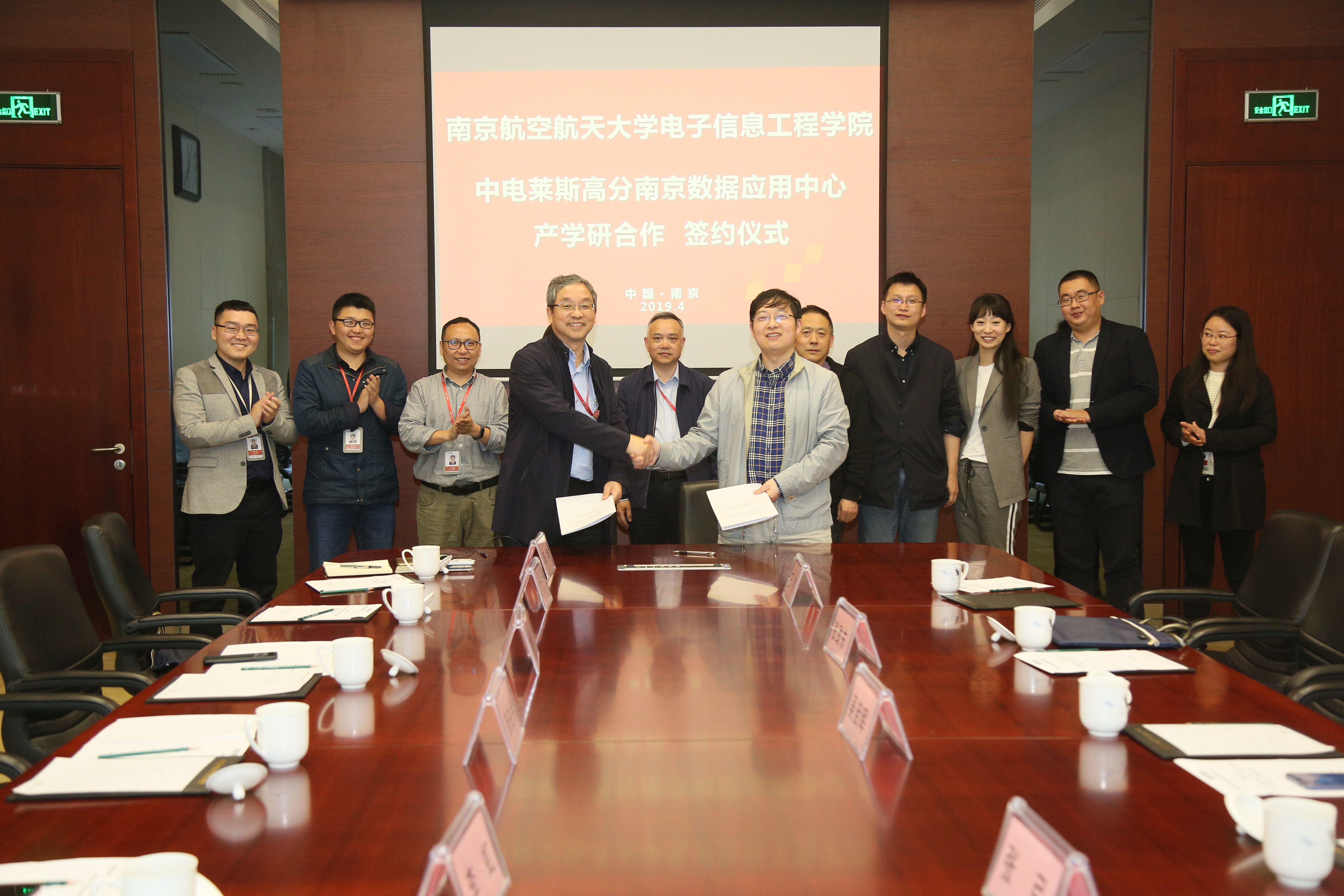 2019年4月23日,为进一步贯彻落实我校与中国电科28所全面合作部署,同时为了加速推进国家高分辨率对地观测系统重大专项工程的落地运用,Ebook漫画 与中国电科28所高分南京数据应用中心在28所签订了产学研合作协议。28所副总工程师鲁士仿、副总工程师兼产业发展部主任张由余, Ebook漫画 常务副院长吴启晖出席了签约仪式。