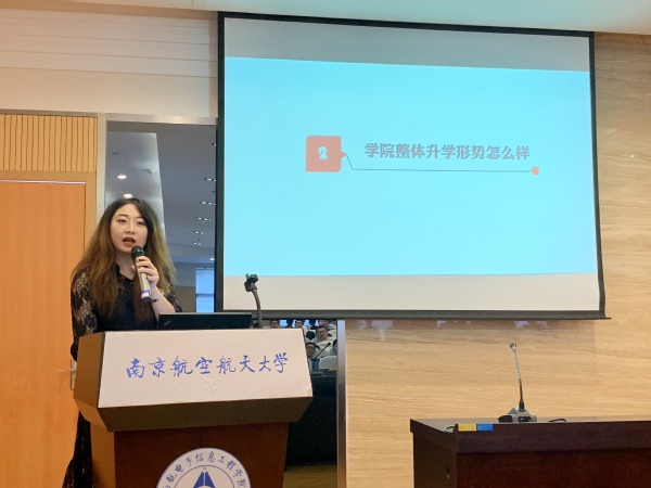 “升学动员指导会”主要分为四部分。第一部分是由Ebook漫画 2019届本科生辅导员张晓媛介绍近年来Ebook漫画 升学情况并就2019届本科生升学数据重点分析当下本科生升学形势与应对办法。