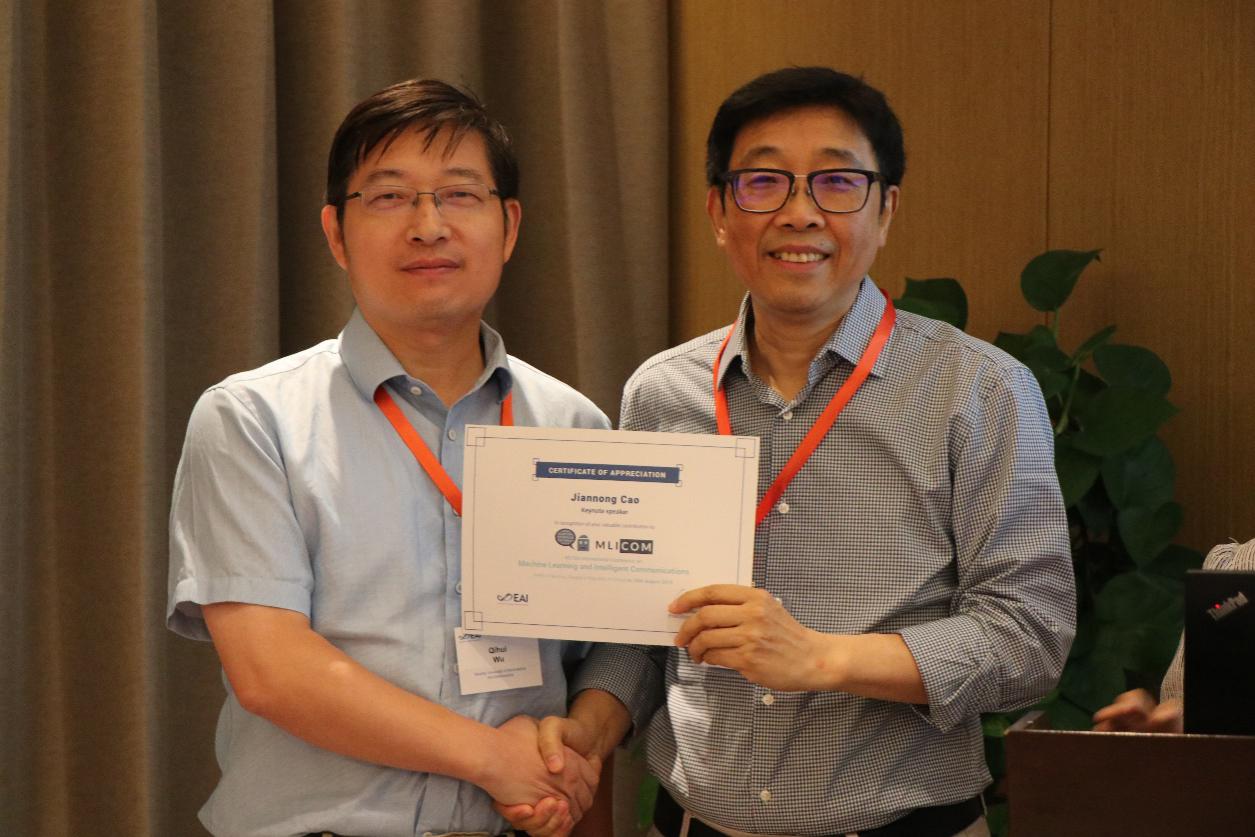 2019年8月24日-25日,第4届EAI机器学习与智能通信国际会议(MLICOM 2019)于南京隆重召开,会议吸引了国内外众多学者参加,我院常务副院长兼天地一体多域认知实验室主任吴启晖教授受邀担任嘉宾出席会议,同时其指导的本科生刘子彤的论文“Topology Sensing in Wireless Networks by Leveraging Symmetrical Connectivity”通过层层筛选,受邀参加会议。