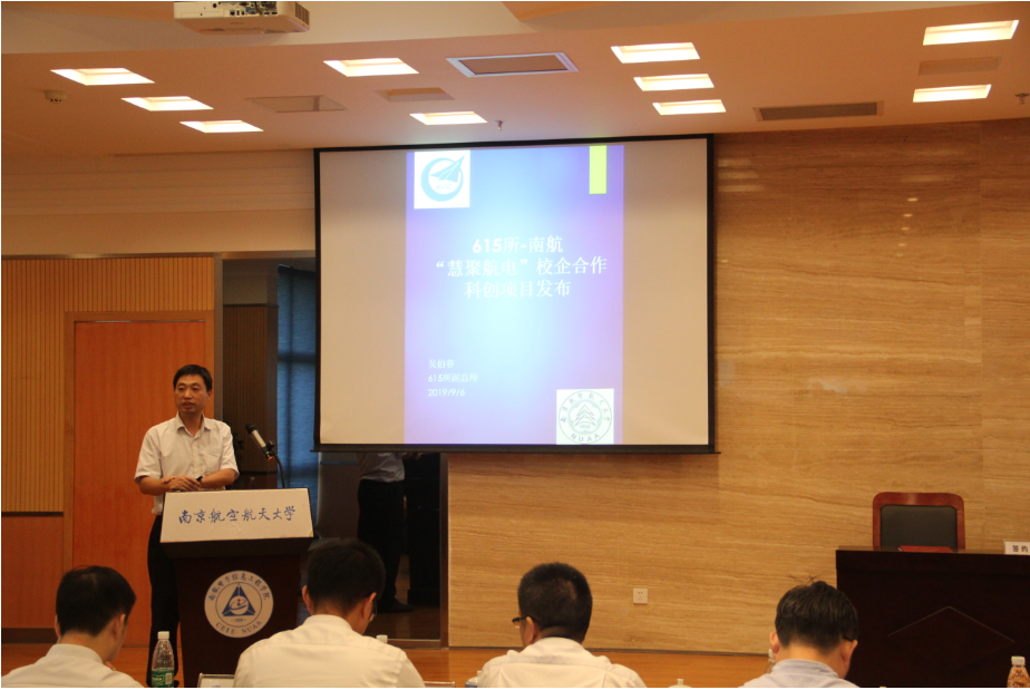 吴伯春面向全校正式启动并发布“慧聚航电”首批校企合作科创项目。