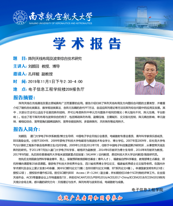 学术报告会——阵列天线布局及波束综合技术研究