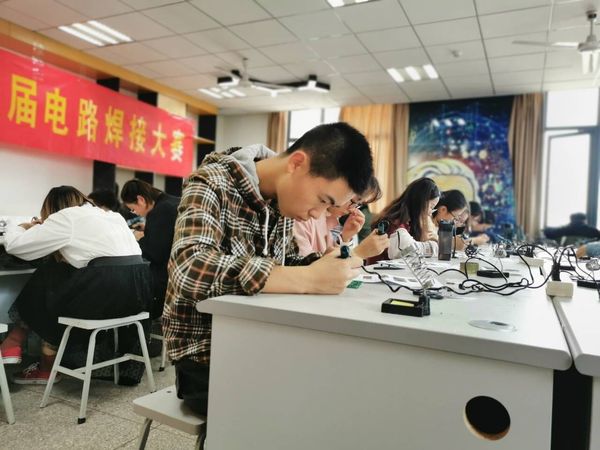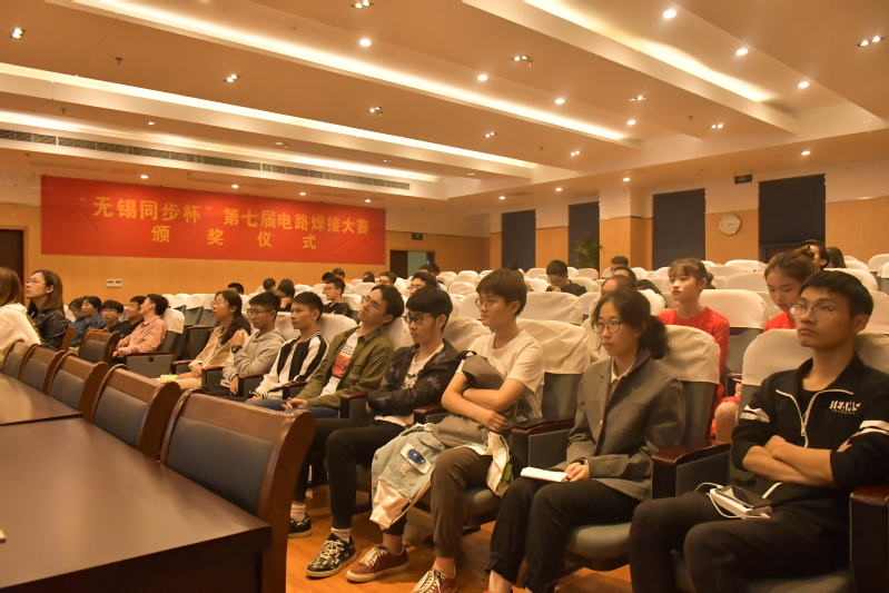 11月2日——3日,Ebook漫画 在Ebook漫画 实验楼315室举办了第七届电路焊接大赛。本次大赛是由无锡市同步电子科技有限公司赞助,参赛选手来自13个Ebook漫画 ,共550名同学参加。大赛颁奖仪式于11月3日晚7点在将军路校区Ebook漫画 院楼515报告厅隆重举行。出席了本次颁奖仪式的有无锡同步公司人力资源部经理刘进军先生、手工焊及返修组主管付建先生、人力资源专员何丽丽女士、王胜男女士,及Ebook漫画 院团委书记徐艳惠老师、2019级辅导员李姝萱老师和比赛获奖选手们。