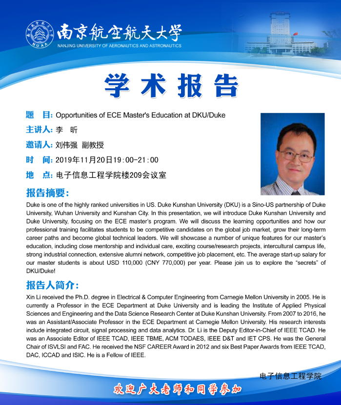 学术报告——Opportunities of ECE Master's Education at DKU/Duke