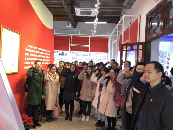 在“党建引领”展室,全体师生党员庄严宣誓,重温入党誓词,重问入党初心。