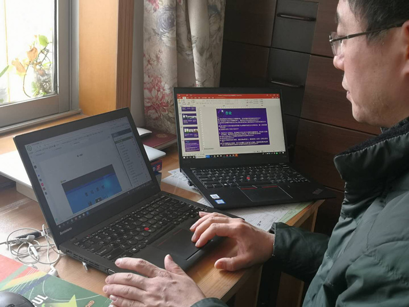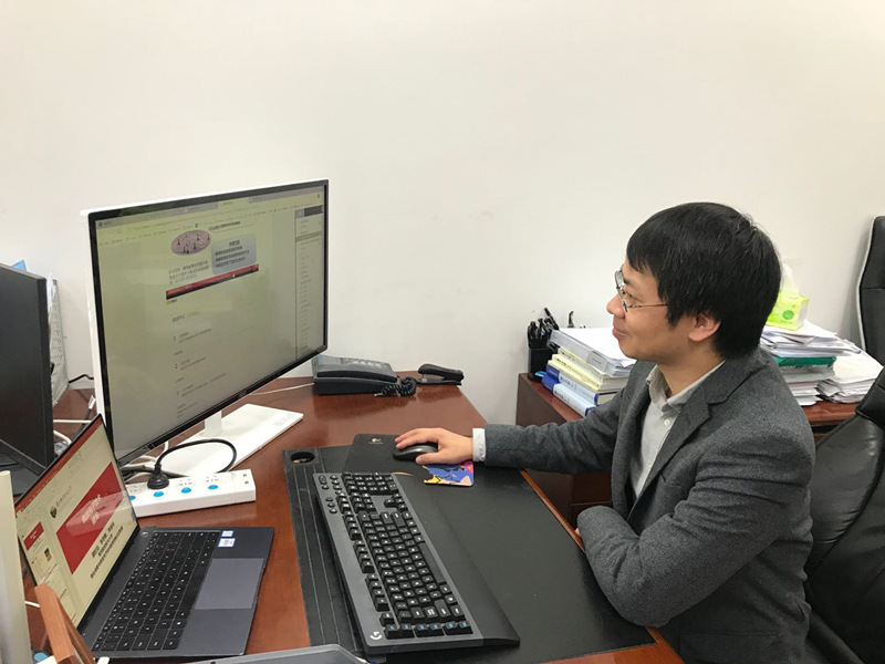 图3.教学副院长刘伟强、副系主任牛臻弋、毕辉在线检查线上教学情况
