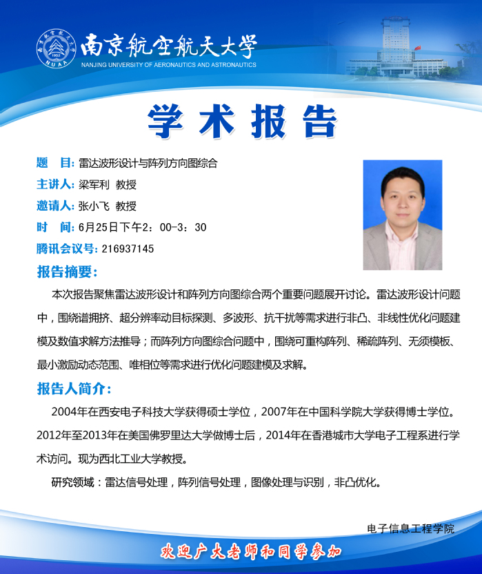 学术报告会——雷达波形设计与阵列方向图综合