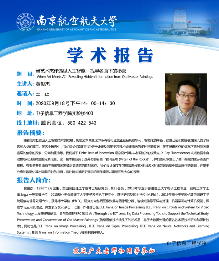 学术报告——当艺术杰作遇见人工智能–找寻名画下的秘密 (When Art Meets AI - Revealing Hidden Information from Old Master Paintings)