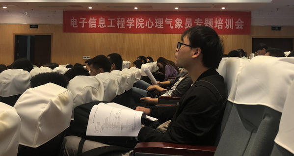 楼515会议室对全体研究生及大一心理气象员进行专题培训,培训会由研究生辅导员李宇飞主持。
