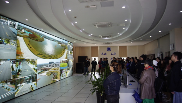 在天目湖校区有关同志引导下,全体人员参观了巡天楼、师生服务大厅、模拟机舱、风雨连廊、教工宿舍等标志性建筑,观看了天目湖校区沙盘模型,切实感受了“城院互动、资源共享,生态优先、环境友好,经济实效、持续发展”的规划愿景的快速实现。