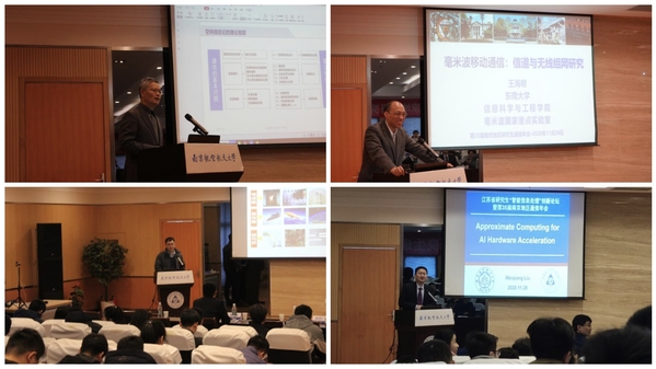 在之后的主报告中,我校徐大专教授作专题报告《雷达的数学理论》,东南大学王海明教授作专题报告《毫米波移动通信:无线覆盖与组网研究》,南京理工大学包华广副教授作专题报告《电子器件多物理场建模》,我校刘伟强教授作专题报告《近似计算及其在AI芯片设计中的应用》。