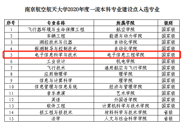 近日,教育部办公厅发布了《关于公布2020年度国家级和省级一流本科专业建设点名单的通知》(教高厅函〔2021〕7号),我院报送的电子信息科学与技术专业成功入选2020年度国家级一流本科专业建设点。