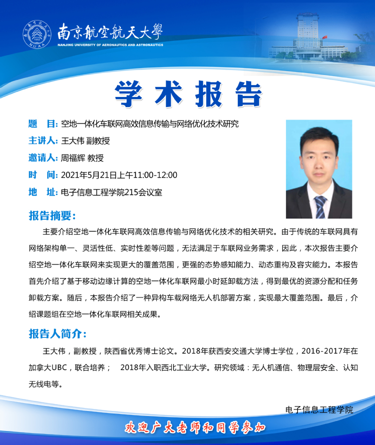 学术报告——空地一体化车联网高效信息传输与网络优化技术研究