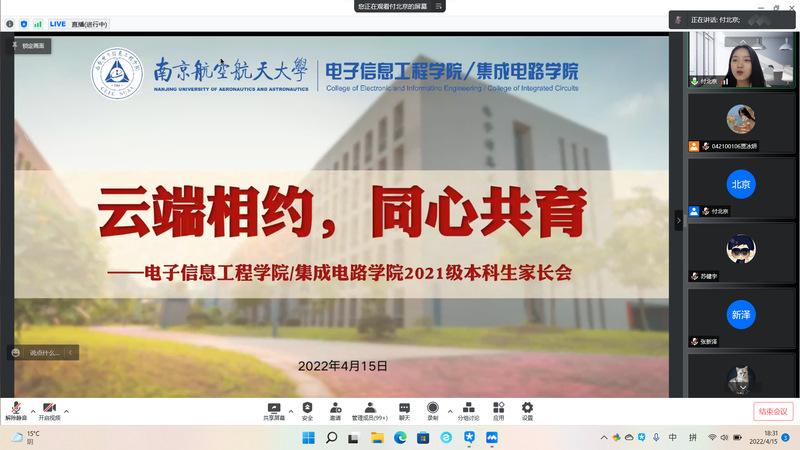 2022年4月15日,我院召开2021级本科生家长会,参加此次会议的有副院长张小飞、院党委副书记雷蕾、院团委书记席维唯、2021级本科生辅导员付北京以及2021级本科生家长。会议由付北京主持。