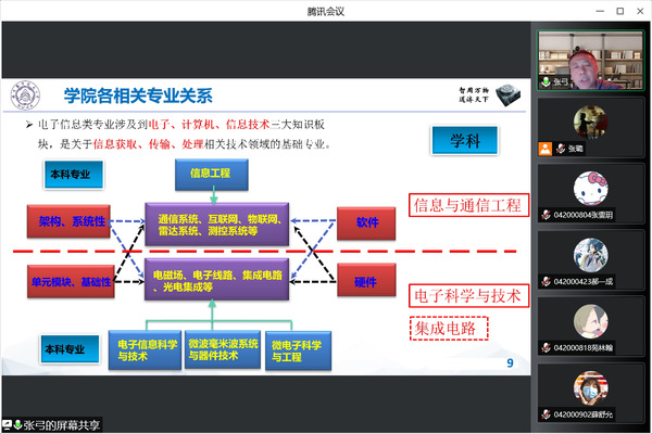 为增进我院2020级本科生对专业方向的了解,帮助同学们结合自身兴趣对未来做好规划,对学生的专业选择给予指导。4月21日,我院在线举行了2020级本科生专业分流宣讲会,院长助理刘冰,副系主任王毅、晋本周,专业负责人胡志忠,教师代表张弓、孔祥鲲,辅导员梅旭鹏及200余名学生参加了此次宣讲会。