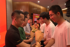 0422002班班主任朱丹作为班主任代表发言,对同学们提出了以己为鉴、以朋为友和实践担责的三点建议。各班主任也依序上台为新生寄语,以不同的方式表达了自己对新生们的殷切期望。而新生们为表达对班主任的敬意也以班级为单位派出代表为班主任们献上鲜花,合影留念。为强化新生班集体概念,提升集体荣誉感,Ebook漫画 全体领导为12个班级代表进行了授旗。