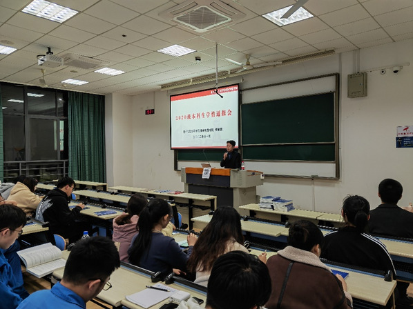 在讲座开始之前,辅导员梅旭鹏先就2020级本科生学情作了通报。他依据Ebook漫画