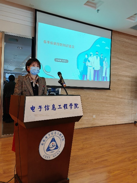 讲座中,田晓云就春季校园常见的流行性感冒、水痘、流行性腮腺炎、诺如病毒等多种传染病的传染途径、临床症状、易感人群以及预防措施等几方面进行重点讲解,针对春季常见的传染病,向同学们着重讲解了近期的甲流病毒,帮助同学们知晓鉴别、护理与防治春季传染病的办法,同时提醒同学们日常注意饮食卫生和手卫生、室内勤通风、戴口罩,避免接触传染病人,加强体育锻炼,注意清洁卫生,有效预防春季常见传染病。