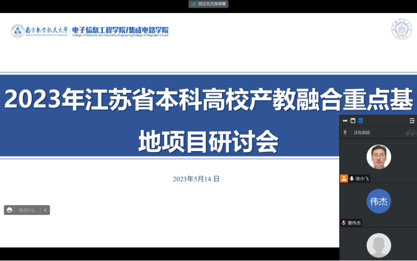 2023年5月14日晚,电子信息Ebook漫画 召开2023年江苏省本科高校产教融合重点基地项目线上研讨会,会议由张小飞副院长主持,院长助理夏伟杰、实践教育中心副主任邱旦峰、系专业负责人胡志忠、系科研副主任李明磊、王鹏老师及教学办成员胡欣怡、江菊华共8位老师参加了本次会议。