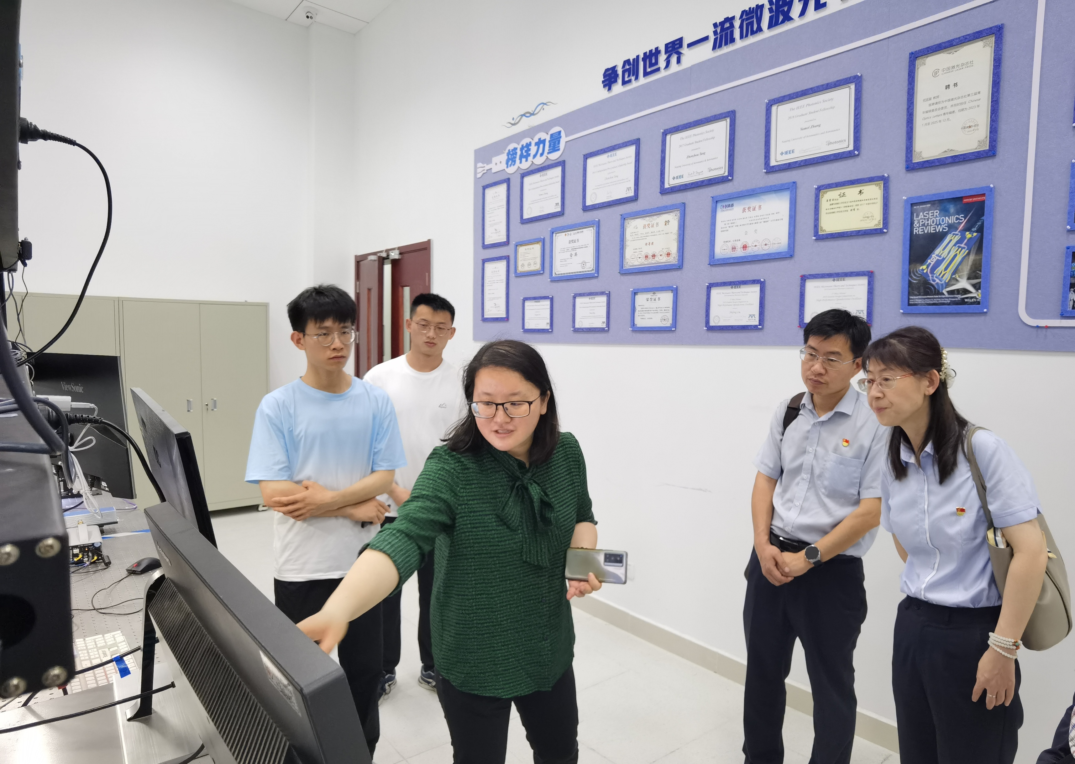 会前,王鹏飞一行参观了微波光子学实验室,朱丹对微波光子技术进行了详细介绍,双方表示在对标国家重大战略需求上可以开展进一步的技术合作交流。