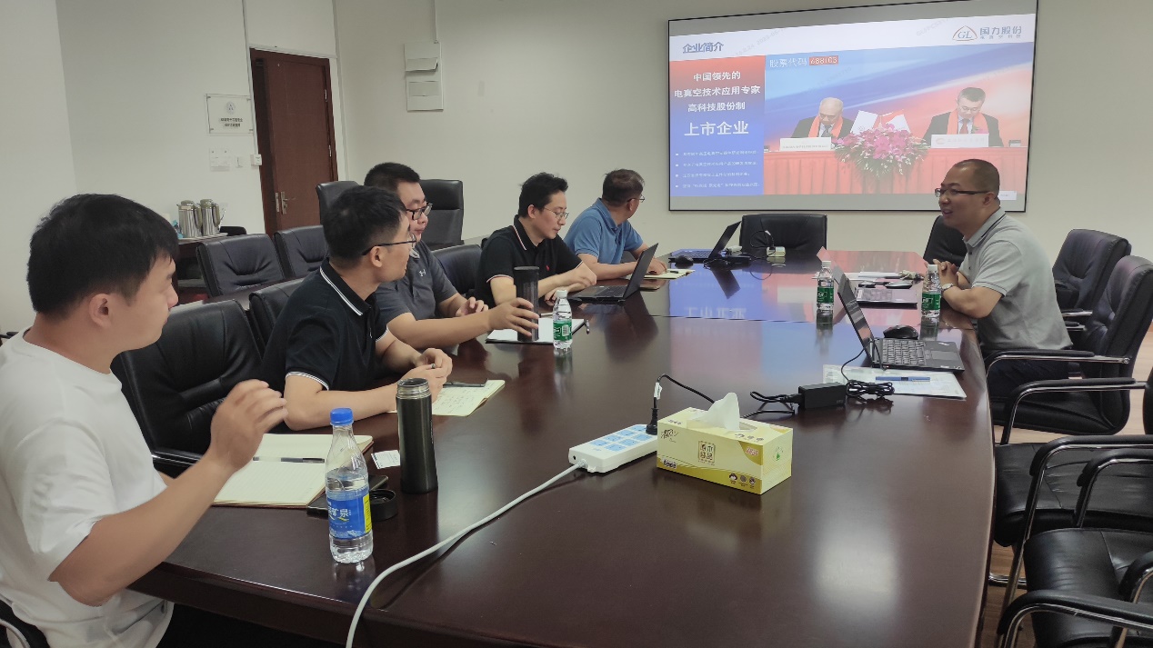 6月16日,昆山国力电子科技股份有限公司人力资源总监张小福、培训经理于慧一行来到电子信息Ebook漫画 开展产教融合交流,Ebook漫画 副院长张小飞、院长助理夏伟杰、信息与通信工程系副主任晋本周、教师代表王鹏和邱旦峰参加调研交流会。
