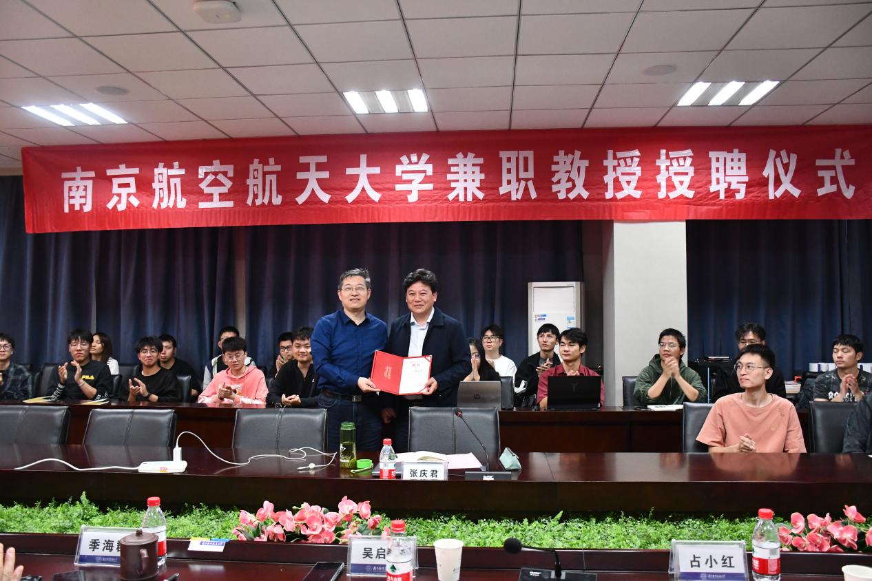 张庆君发表了激情洋溢的讲话,追忆了与南航的合作历史,表达了对南航的感激之情,表示愿为南航的学科发展和人才培养作出自己的贡献,促进南航空天科技与电子信息的交叉发展,为“双一流”建设添砖加瓦!