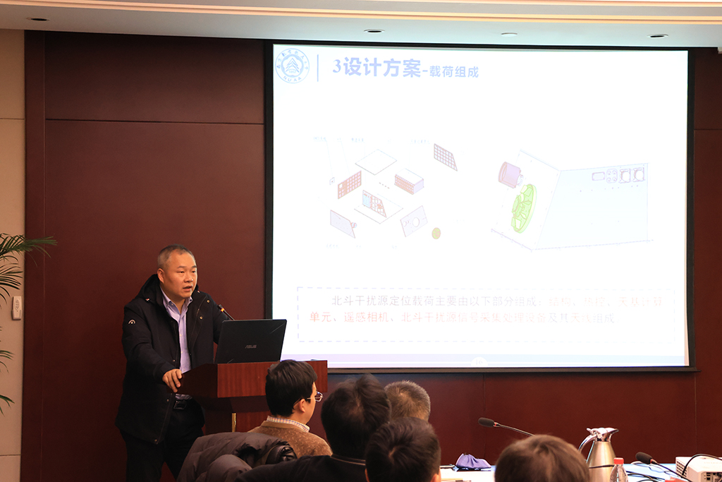 副校长吴启晖、载人航天工程软件和数字化中心主任程胜、龙芯中科技术公司董事长胡伟武分别致辞。程剑教授作为项目总师作“基于天基计算的北斗干扰源在轨定位试验项目”、王鹏副教授作“星载对地遥感图像小目标配准定位算法”的报告,其他单位的专家还分别作“高动态北斗定位及地面辐射源采样技术”、“多普勒定位原理及实现”、“龙芯天基云系统及实现“的报告。会议讨论轻松热烈,专家建议中肯高效,会议最后由国家无线电监测中心总工程师黄标作了总结讲话,充分肯定该项目对我国无线电监测和北斗安全应用的重要意义,并预祝项目取得圆满成功。