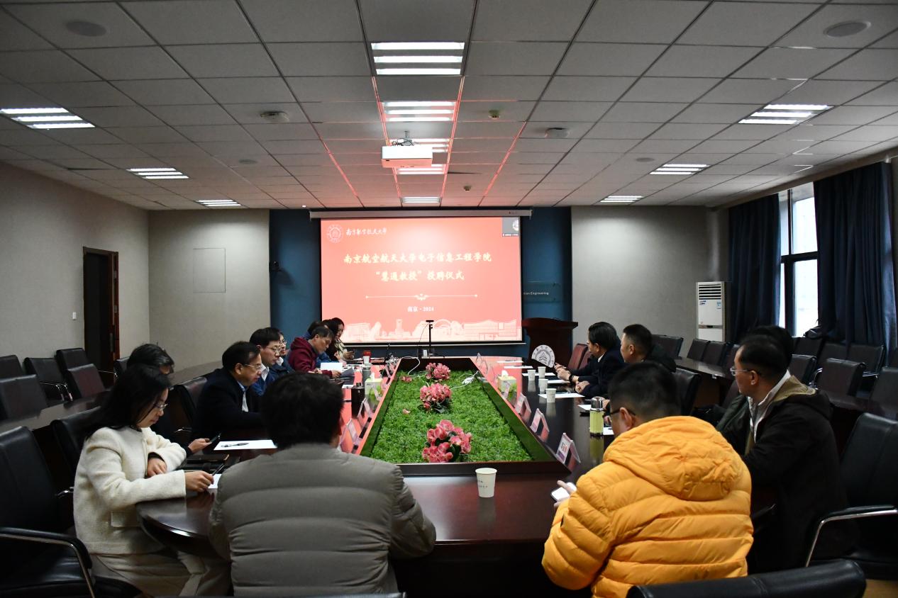 2024年3月14日下午,南航校友会电子信息行业分会2024年第一次理事会暨“慧通教授”授聘仪式在Ebook漫画 楼209会议室举行。Ebook漫画 党委书记季海群、常务副院长潘时龙、原党委书记聂东林、国家级教学名师王成华教授、办公室主任季娟、Ebook漫画 系班子代表,以及电子信息行业分会执行会长张建国,副会长沈耀伟,副秘书长牛臻弋、何小祥、王琪,理事张宝生、陈红芬、李海峰、印亚鹏等出席会议,吴宾、吴生业等其他副会长、理事线上参会。会议由聂东林主持。